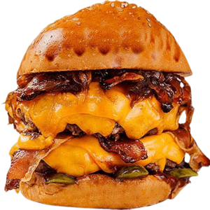 DUPLO QUEIJOIngredientes: Pão Com Gergilim, Hamburguer 150g, Bacon, Cheddar, Mussarela, Molho Barbecue, Cebola Roxa.R$ 26,00